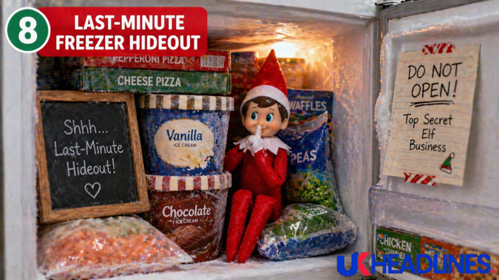 Place the elf in the fridge or freezer wearing a scarf or sitting inside a bowl for a snowy North Pole style scene. This is one of the smartest last minute elf on the shelf ideas because it takes seconds to prepare. On busy evenings, simple ideas like this help you keep the tradition going without pressure.